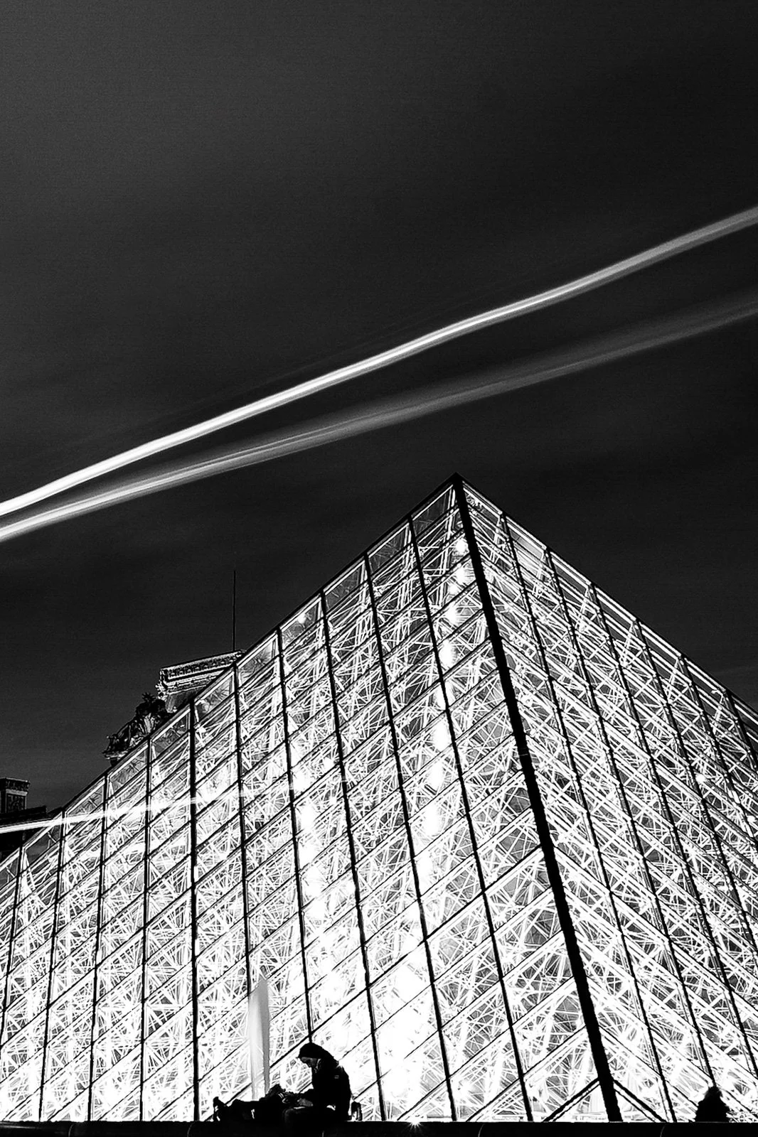 They enter, cross, and disappear, leaving only traces of movement in the geometry of light.